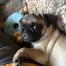 "I was just online looking at your new pug puppies and wanted to share a picture of Yodah. We purchased him from you in 2004. Our "first baby" just turned 11, and is a very loved member of our family. 11 years and three kids later we all love Yodah very much! Thank you, Jordan"